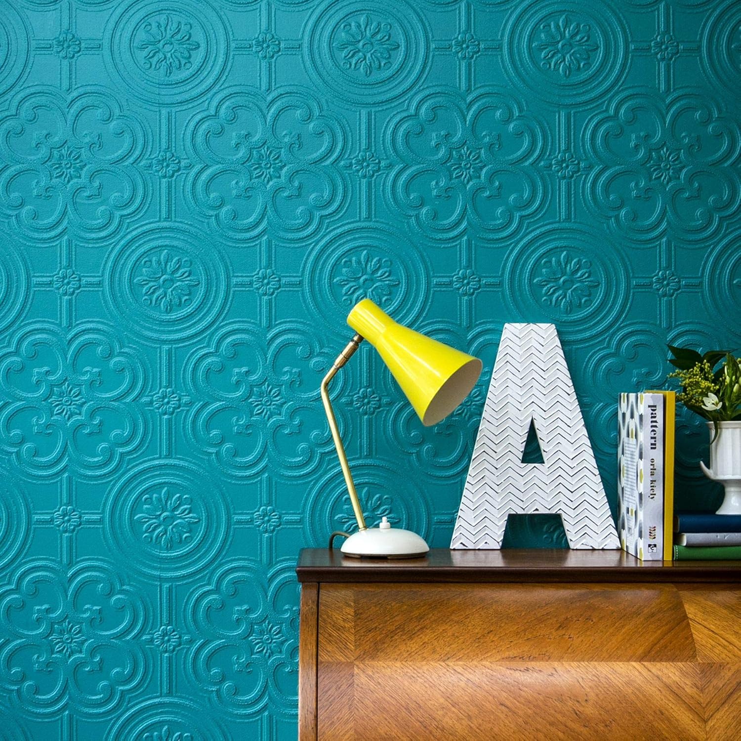 This is a paintable wallpaper. Transform any wall or ceiling from ordinary to fabulous with character and dimension. Replicate the look of authentic tin ceiling, carved wood or a plaster frieze with a wonderful selection of historically inspired or contemporary designs. Pick your style and finish with any paint color or faux technique to create your own masterpiece.