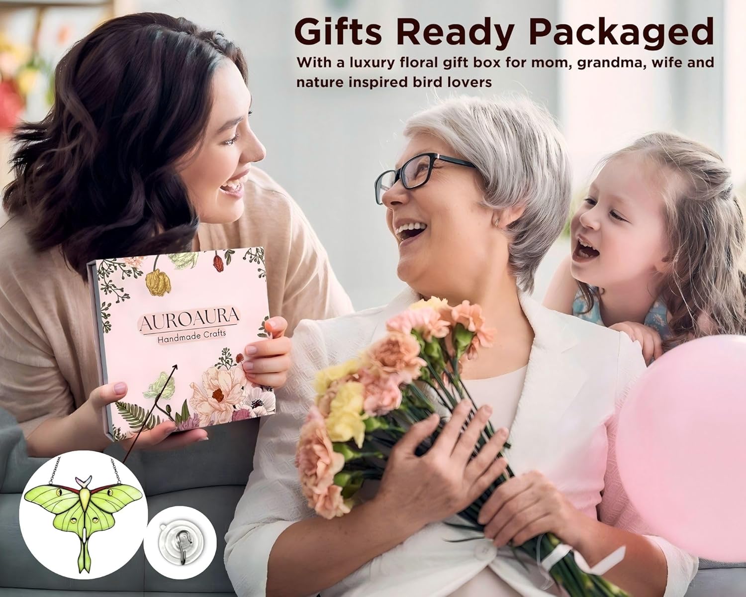 Elegance gift for woman: mom, sister, aunt, friend, bird lover, grandmas, or meaningful times like mothers day anniversary, house warming, holiday, Valentine, birthday, Christmas days. The multicolor luna moth is offering a unique lovely gifts idea for womens who loving handmade art decorations.