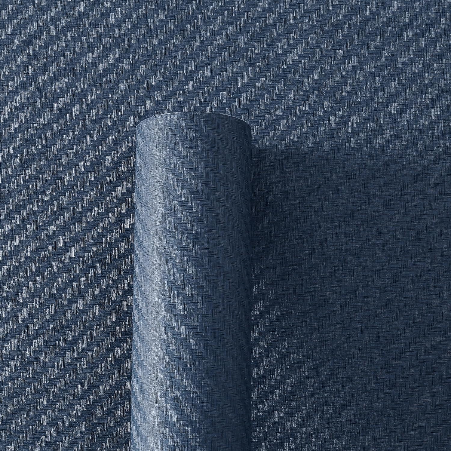 Haimin Fabric Wallpaper Textured Contact Paper (24in X 393in) Navy Blue Grasscloth Wallpaper Peel and Stick Faux Linen Wall Paper Self-Adhesive Vinyl Looks Like Woven Straw