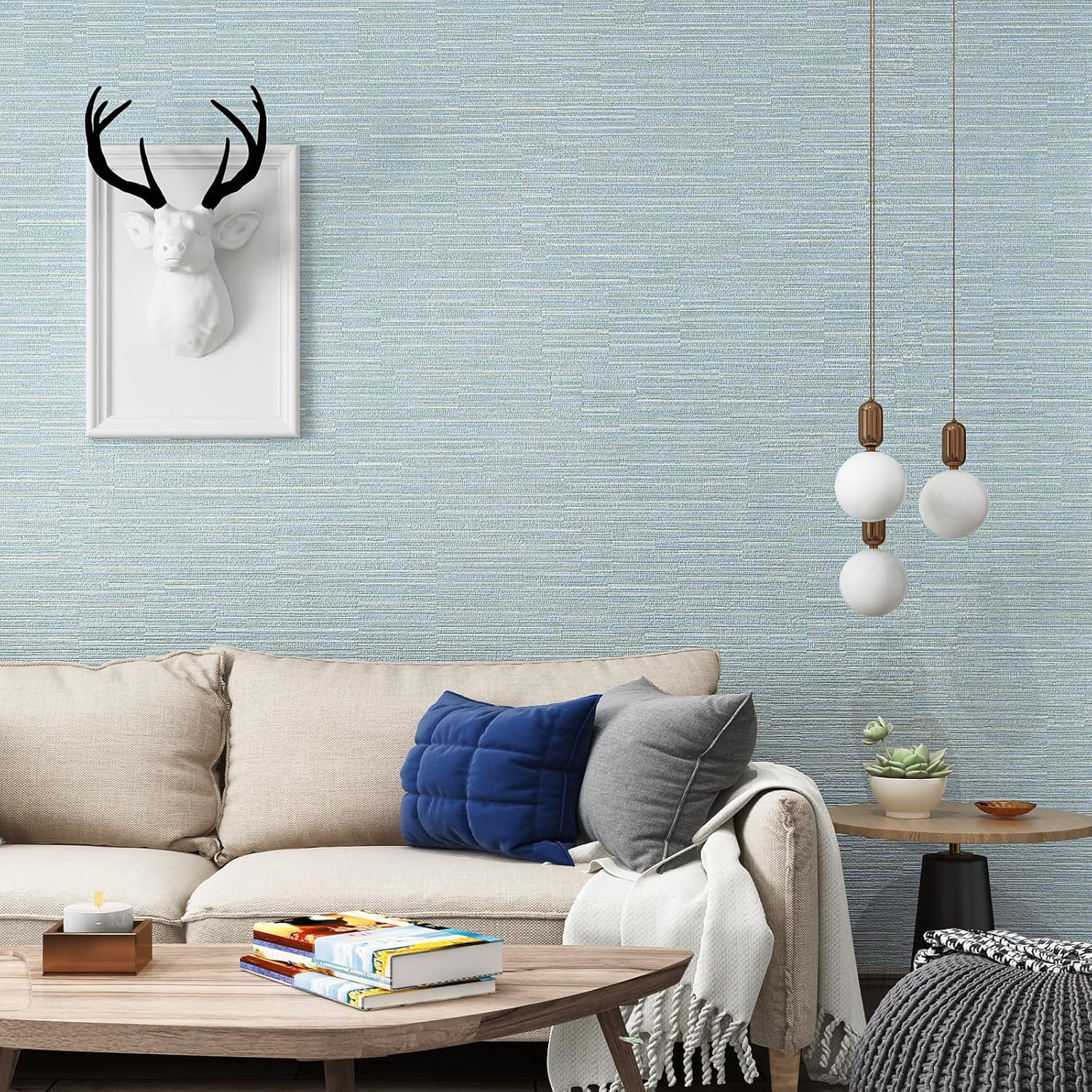 Blue Grasscloth Wallpaper