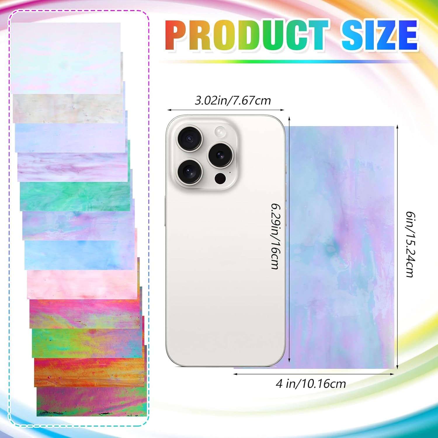 Nuanchu 72 Sheets Variety Stained Glass Sheets Pack 4 x 6 Inch Cathedral Art Glass Supplies Mosaic Tiles Transparent Iridescent Streaky 6 Color Schemes for Crafts Bright Color for DIY Home