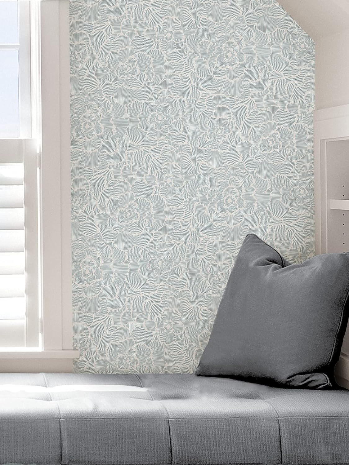 Bring a tranquil ambiance to your home with this stunning floral wallpaper. White ink against a periwinkle backdrop lends a tactile element that the flowers are bursting onto your walls. Blue Saraya Peel and Stick Wallpaper comes on one roll that measures 20.5 inches wide by 18 feet long.