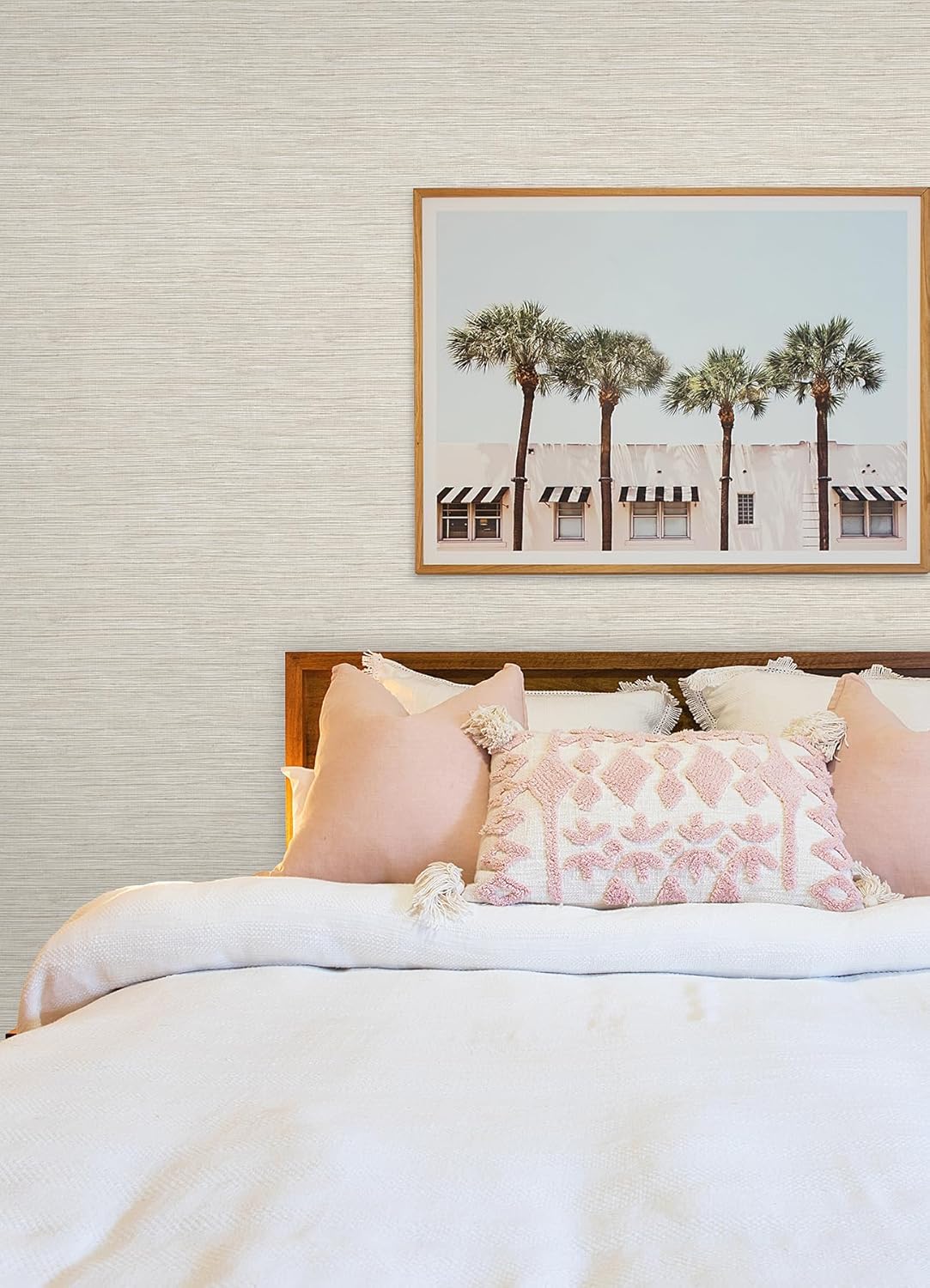 RoomMates Neutral Dimensional Grasscloth Peel and Stick Wallpaper, RMK12682PLW